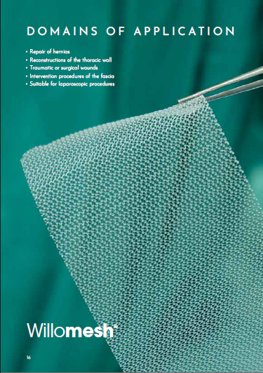 Willomesh® est une prothèse chirurgicale en polypropylène de haute qualité pour la réparation des hernies et les reconstructions de la paroi thoracique.